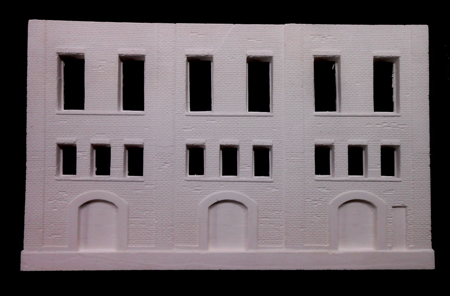 Three different 11" x 6" x 1/4". warehouse/factory wall castings. Includes windows, fire escapes and painting instructions. Prefect for creating a background "flat" or for kitbashing. Buy several to create a huge background factory flat. Great brick detail!